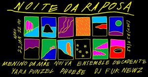 Bilhetes: 5€ / 2,5€ sub-25 já disponíveis aqui. Com: DJ FUK NEWZ Ensemble Decadente Menino da Mãe Noiva Phoebe Yara Punzel Regressa a nossa adorada Noite da Raposa em modo físico, depois de uma última edição no modo online pelo qual 2020 ficará recordado na história dos concertos. O desafio e modelo é o já tradicional: dois palcos na Sala Oficina da ADAO, e vários dos nomes novos e desafiantes das diversas electrónicas-e-não-só feitas pelo país revezam-se, sem pausas. Nesta…